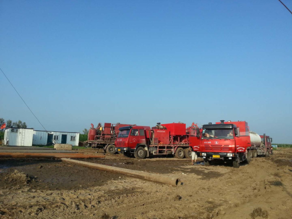 于7月20日早晨7:30施工圓滿完成。本井油層套管完鉆井深2817米,注灰82方(60方低密度+22方原漿),頂替33.8方,水泥漿返出,施工正常。