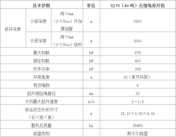 XJ700(40噸)無繃繩修井機是對傳統(tǒng)修井機的一次開創(chuàng)性變革,它取消了地面繃繩,使得修井機不再受油田地理位置和地表狀況的限制,免除了作業(yè)前后安裝和拔除固定錨的工序,大大縮小了整機的安裝和作業(yè)占地面積,縮減了作業(yè)時間,**了作業(yè)復雜度,使得在各類惡劣和復雜的地面條件和氣候環(huán)境下的作業(yè)難度**,效率**,尤其適合城區(qū)內部、戈壁沙漠等狹小或復雜地形的修井作業(yè)。